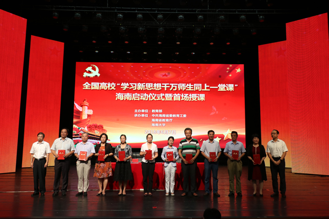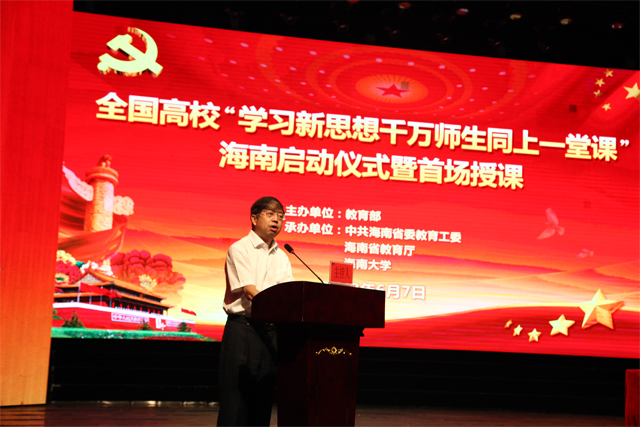 6月7日上午,海南大学思源学堂大礼堂内座无虚席,由教育部主办,海南省委教育工委、教育厅、海南大学承办的海南高校“学习新思想千万师生同上一堂课活动”动员大会暨首场授课在海南大学开讲。