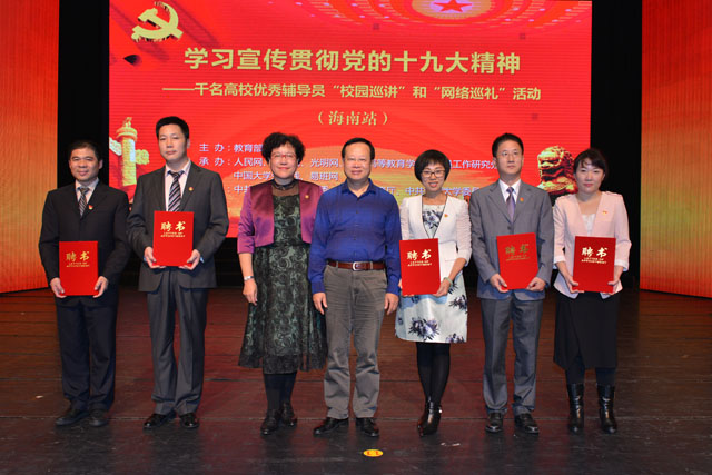11月29日上午,由教育部组织开展的“学习宣传贯彻党的十九大精神——千名高校优秀辅导员‘校园巡讲’和‘网络巡礼’活动”报告团海南站报告会,在海南大学海甸校区思源学堂顺利举行。