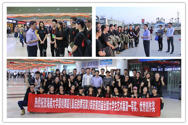 美兰机场出站口人头攒动,一群身着海大艺术团服装的同学推着行李走了出来,一时间掌声响起,校党委副书记、纪委书记陈封椿带着团委的老师亲自到机场迎接参加展演载誉归来的老师和同学们,带去了学校领导、老师和同学们的祝贺和慰问。