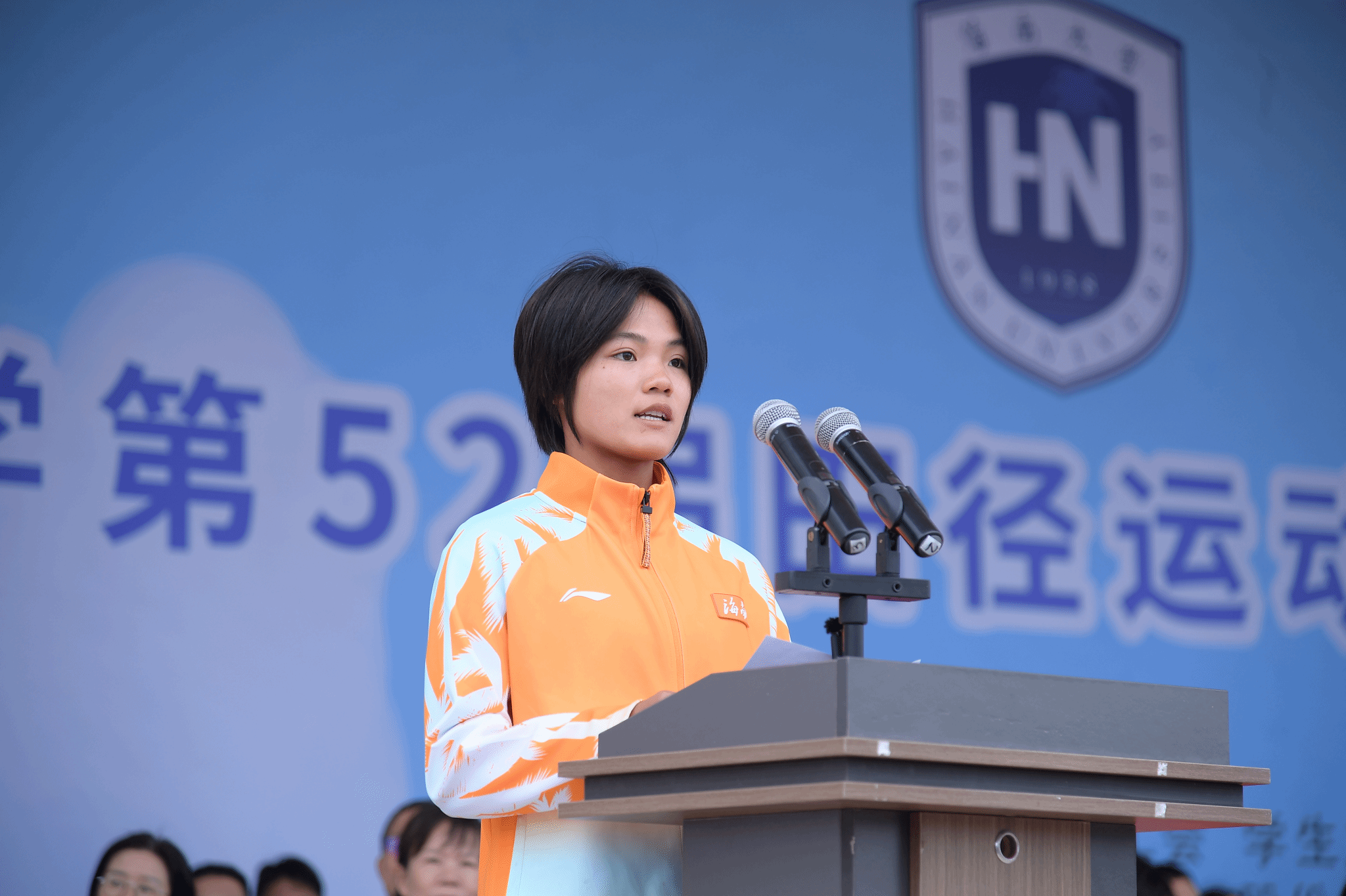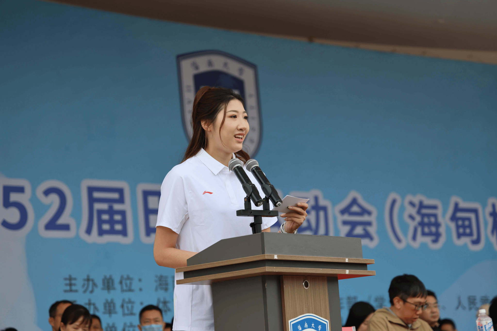 11月19日下午,海南大学第52届田径运动会在海甸校区第一田径运动场开幕。邱钰涵宣读倡议书。郑丹婷 摄