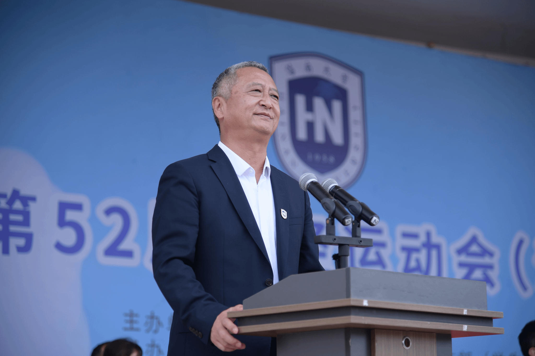 11月19日下午,海南大学第52届田径运动会在海甸校区第一田径运动场开幕。骆清铭致开幕辞。宣传部 摄