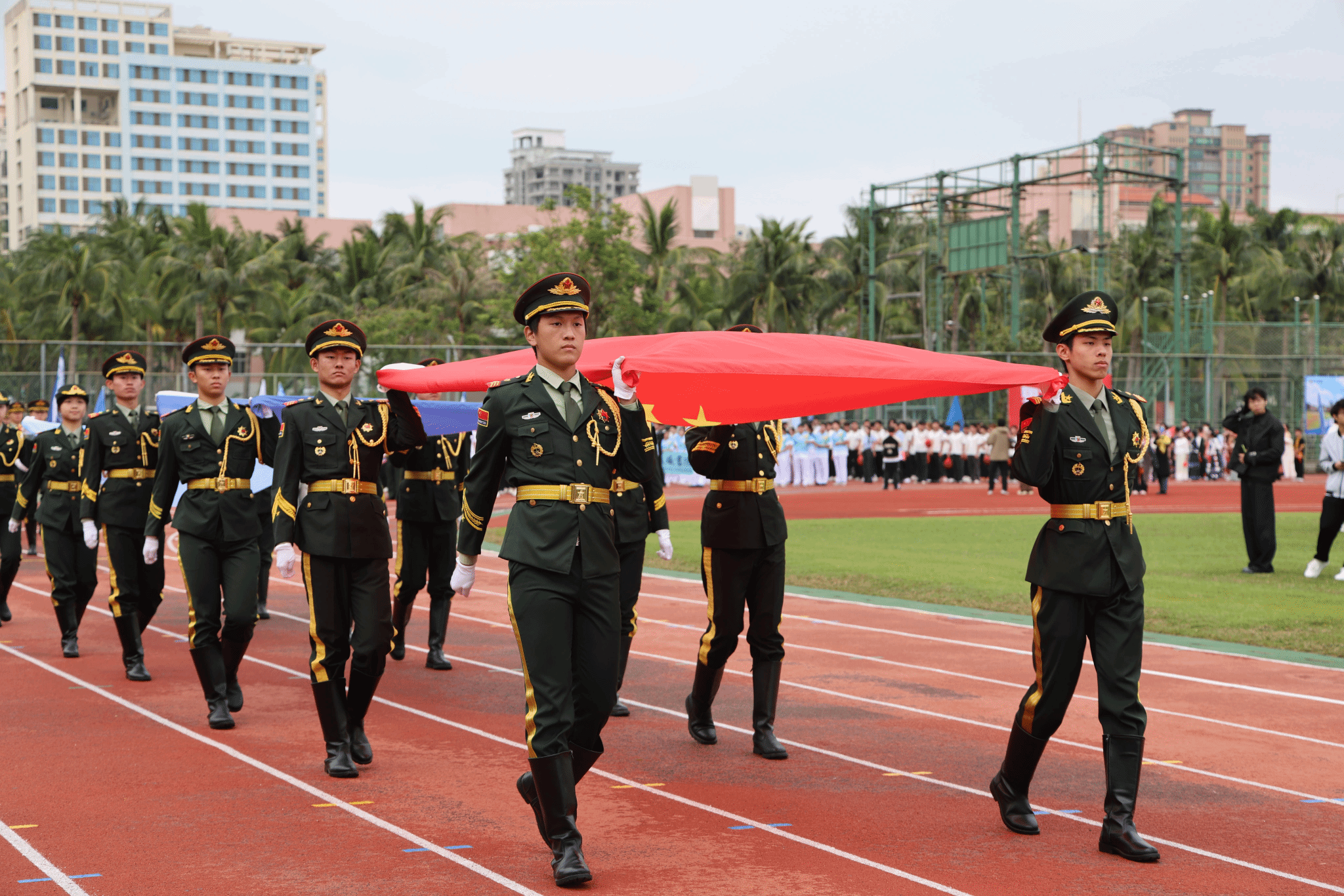 11月19日下午,海南大学第52届田径运动会在海甸校区第一田径运动场开幕。国旗队入场。宣传部 摄