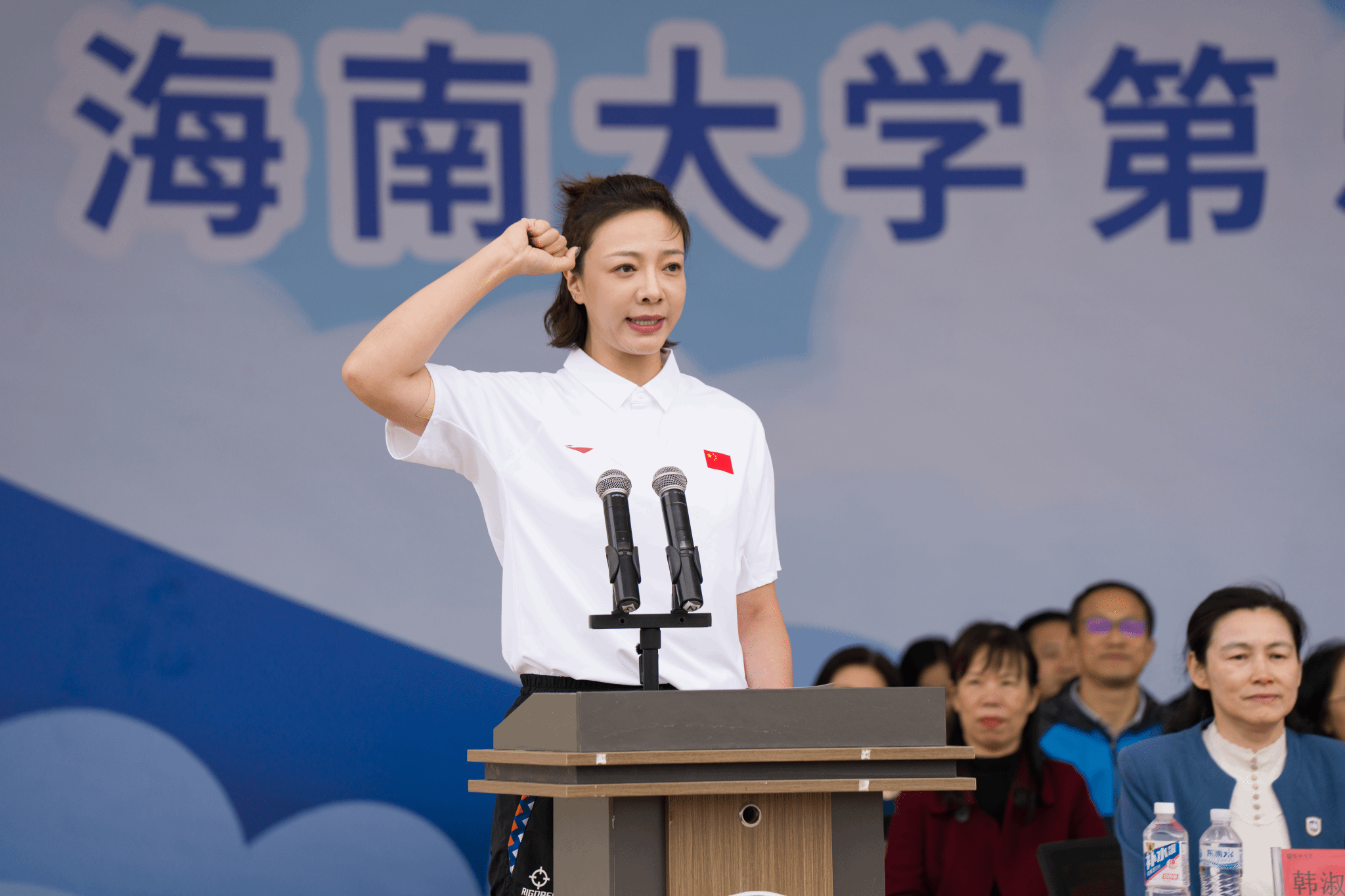 11月19日下午,海南大学第52届田径运动会在海甸校区第一田径运动场开幕。邓雪莹宣誓。宣传部 摄