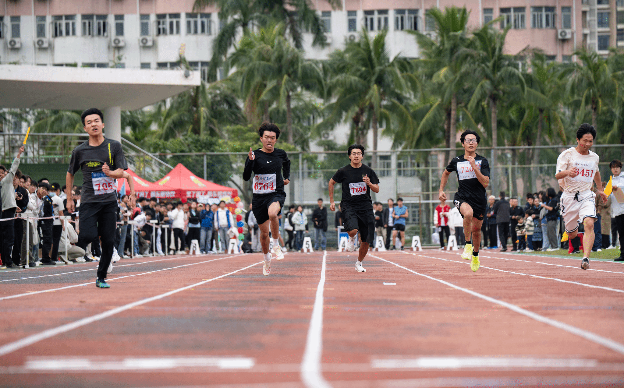 11月19日下午,海南大学第52届田径运动会在海甸校区第一田径运动场开幕。男子100m预赛现场。周铭轩 摄