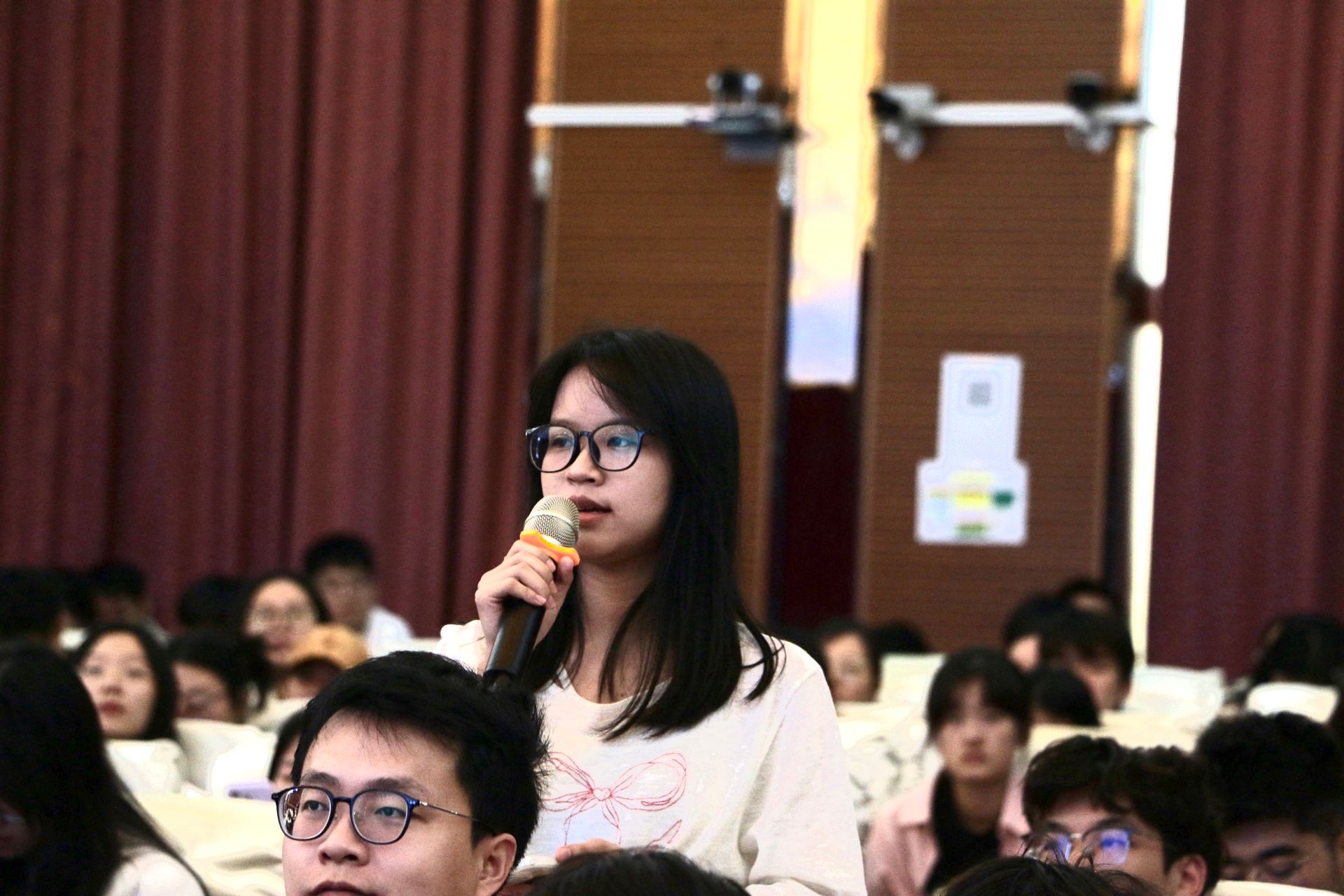 11月28日上午,海南大学第五十期顶尖科学家讲坛在社科楼二楼报告厅举办。学生代表提问。吴佳睿摄