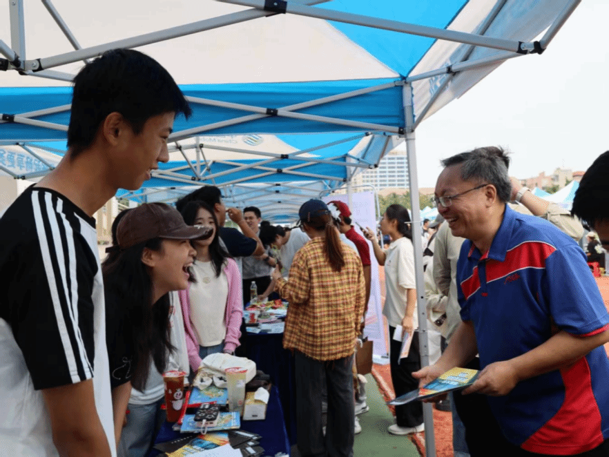 本站讯10月25日至26日,以“千帆竞渡自贸港,百团一流谱新章”为主题的海南大学第二十四届学生社团文化节,在海甸校区第一田径场开幕。本次活动由校团委主办、学生社团指导中心承办,各社团协办,海口市旅文局支持,活动期间吸引逾万名师生参与。25日上午,校党委常务副书记张继友前往活动现场,与社团成员展开亲切交流。