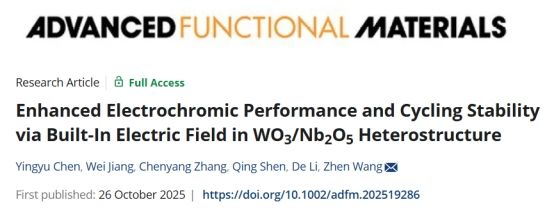 海南大学材料学院王振副教授Advanced Functional Materials:内建电场提升电致变色循环稳定性