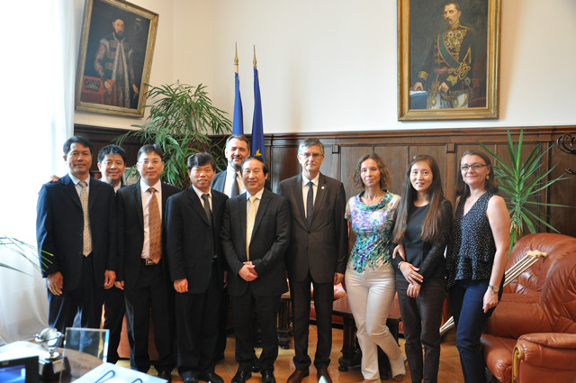 7月12日,李建保一行访问了捷克布尔诺科技大学,与该校国际事务部负责人Peter Nemec及经管学院、电子通讯工程学院、化学院等学院的院长和教授进行会谈。双方达成合作意向,计划在生物、信息、传感器和材料科学、经济管理等专业互派本科生交换学习,互派教师和专家开展科研合作。代表团一行还参观了化学院的生化和可再生能源利用研究中心。