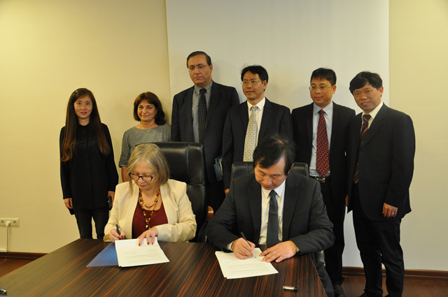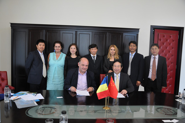 7月14日代表团还访问了布加勒斯特理工大学,与该校副校长George Darie、国际事务部主任、以及经管学院和法学院负责人进行了会谈。双方商定依托两校不同的气候优势,开办冬令营与夏令营,结合两校科研共同点,开展科研合作,并签署了双方谅解备忘录。