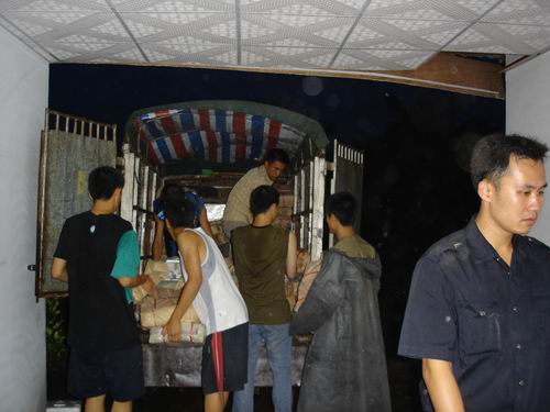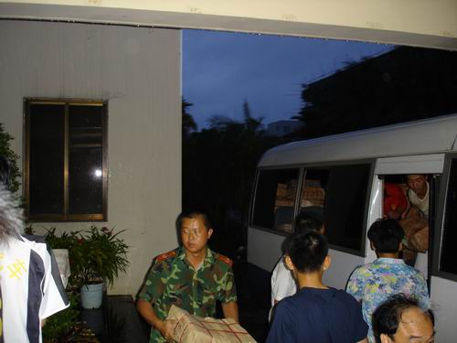 校保卫处30多位干警在黄海宁、符志新两位同志的带领下,与图书馆负责人一起投入了图书转移的紧急行动。来自各个学院的80多位一年级同学组成了突击抢险队。四辆运送图书的汽车来往穿梭,3000多包图书在大家的手中迅速传递。参与抢险的师生顶风冒雨,不顾疲劳,连续作战近两个多小时,终于把全部图书转移到安全场所。