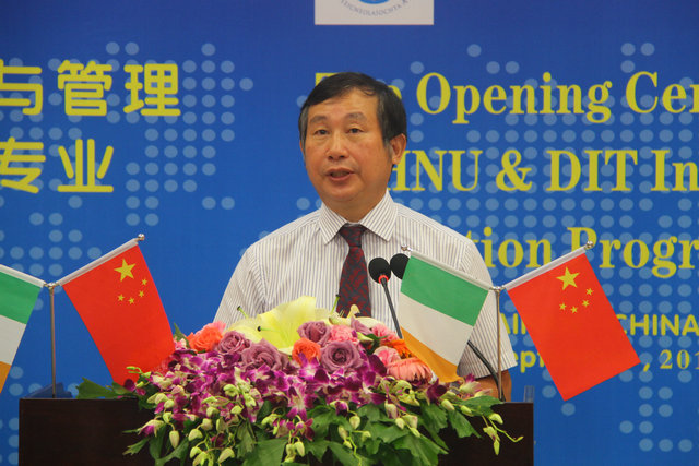 李建保在开班典礼上致辞。他说,今天的开学典礼标志着海南大学在教育国际化道路上迈出了新步伐。感谢爱尔兰都柏林理工学的信任与支持,选择海南大学作为会展经济与管理专业在中国的唯一合作伙伴。他表示,海大会和爱尔兰都柏林理工学院精诚合作,集中优势教育资源,将学生培养成为通晓国际惯例、具有国际化视野和思维能力、具备国际竞争力的创新型、国际化会展人才。