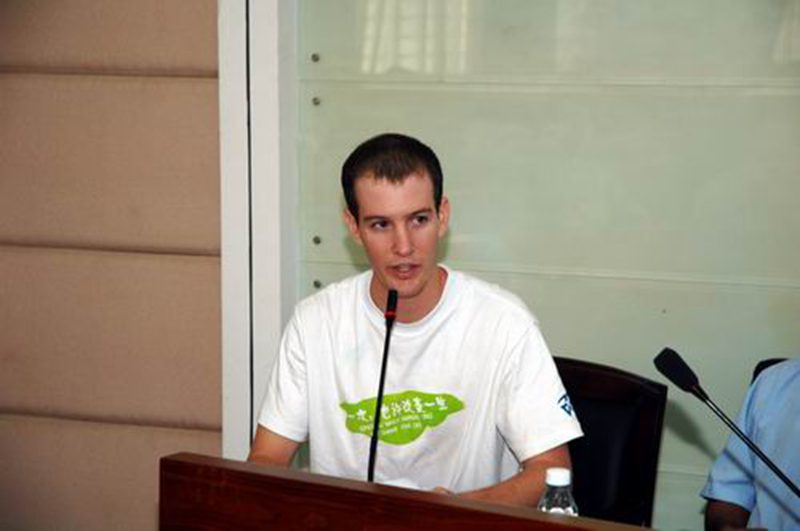 美国籍留学生万森(Samuel Pieter)代表全体留学生新生发言