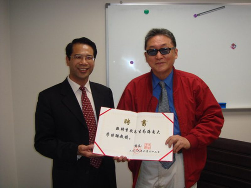 谭世贵校长拜访李敖先生并向其颁发海南大学特聘教授聘书
