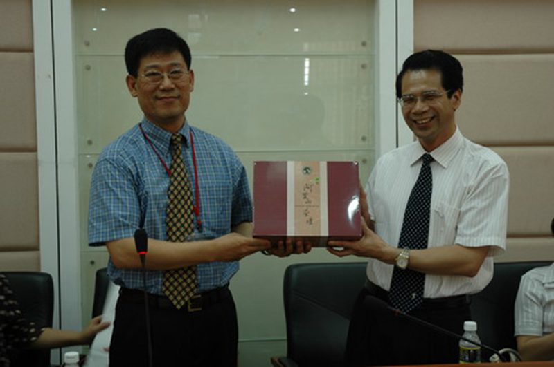 我校在办公楼一楼报告厅举行隆重欢迎仪式,校长谭世贵教授对参访团一行的到访表示热烈欢迎,他说台湾岛与海南岛就像珍珠与玛瑙,有许多相似之处,随后谭世贵校长还向参访团嘉宾介绍了我校的基本情况以及近年来对外交流与合作方面的情况,包括聘请中国国民党主席吴伯雄先生等一批台湾知名人士出任我校特聘教授等职务;首次派遣在校优秀本科生赴台湾学习深造;举办首届海南大学.台湾高校大学生冬令营,协助省台办、省台联举办多次两岸青少年夏(冬)令营活动等。谭世贵校长希望通过本次交流活动,促进两岸青年学生的相互了解,密切两地高校的交流与合作。