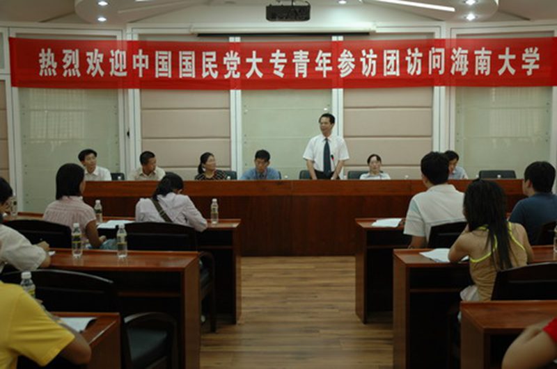 参访团领队、国民党海外部副主任任弘先生说,他是第一次来海南,发现海南的气候和植被与他的家乡台湾南部非常相似,参访团的同学大都是第一次离开台湾,对海南的认识也只停留在书本上。而他本人对海南怀有很深的情感,他了解到北宋大文豪苏东坡曾经被贬海南,而著名的宋氏家族、国民党高级将领郑介民先生等一批国民党高官都是祖籍海南。任弘先生表示,希望通过本次活动,加强两地青年的交流与合作,并希望明年组团邀请更多的台湾青年访问海南。最后,任弘先生对海南大学给予参访团热情周到的接待表示了感谢。
