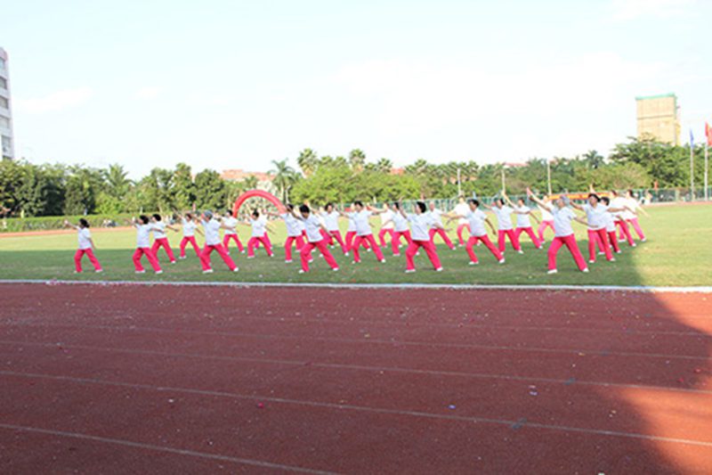 开幕式上,各代表队进行了独具专业特色的团体操表演。管理系的独特装束展示;旅游系的花环、舞蹈和模型飞机的出场阵容博得了观众的阵阵掌声;由60名女生表演的健美操,展示了当代大学生青春洋溢与活力四射;由城西校区离退休人员带来的精彩舞蹈——自由飞翔,展示了老年人老当益壮、精神抖擞的风貌。他们精彩的表演赢得现场阵阵掌声。