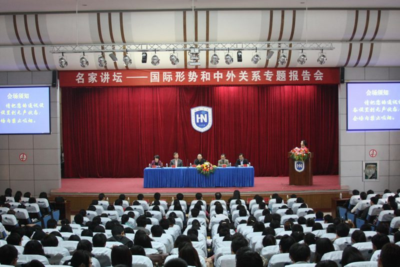 12月16日下午,外交部公共外交咨询委员会副主任马振岗,前驻泰国、新加坡、尼泊尔大使张九桓,前驻瑞典、新西兰大使、外交部翻译室主任陈明明三位资深外交官做客我校名家讲坛。马振岗、张九桓先后为师生作了题为“国际形势和中外关系”的专题报告,陈明明简要介绍了外交部考录工作人员的有关情况。我校党委书记刘康德会见了马振岗一行并表示热烈的欢迎。海南省外事侨务办公室副主任王胜出席了报告会,我校副校长曹献坤主持报告会。