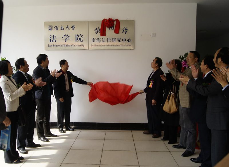 刘岩主任、谭基虎副厅长、张学泮专职副主席、刘康德书记、童光政院长等领导共同为海南省南海法律研究中心揭牌。
