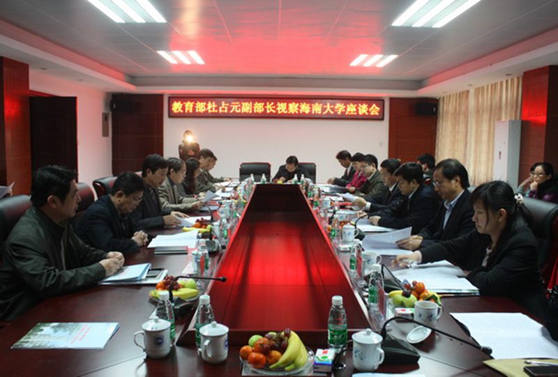教育部科技司基础处副处长邹晖,杜占元副部长秘书栾宗涛,海南省教育厅厅长胡光辉、高教处副处长朱双平、办公室副主任卢方洪,我校校长李建保,党委副书记、副校长周兆德,党委副书记、纪委书记陈封椿,副校长刁晓平、何忠平、曹阳陪同视察并出席座谈会。胡光辉厅长主持座谈会。