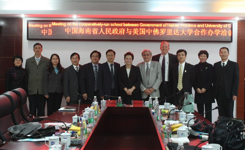 2月21日,美国中佛罗里达大学代表团一行访问我校,并就联合创办具有国际水准的旅游学院 — 海南中佛罗里达大学(UCF-HN)一事进行了磋商。美国中佛罗里达大学执行副教务长切斯、副校长兼总法律顾问科尔、罗森酒店管理学院院长皮赞姆、副院长王有成,海南省教育厅厅长胡光辉、副厅长谭基虎、国际合作与交流处王鑫,海口市教育局副局长秦文,我校校长李建保、副校长刁晓平、曹阳等出席会议。海南省教育厅副厅长谭基虎主持会议。