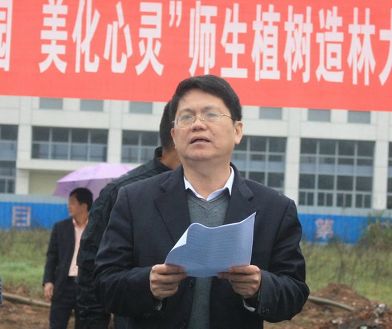 何忠平副校长宣布我校“绿化校园,美化心灵”师生植树造林大活动正式启动。