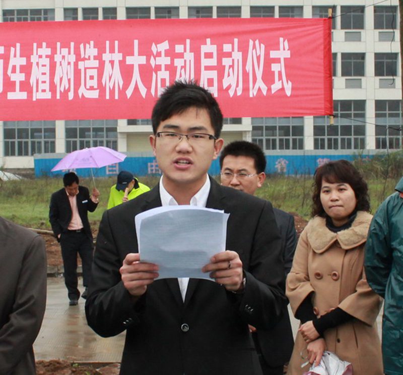 外国语学院08级日语专业学生史旭峰在启动仪式上代表全校学生发言,表示将以饱满的精神状态,积极行动配合“海南文明大行动”,广泛动员参与活动中来,统一按照学校的安排部署,保质保量地完成植树任务。