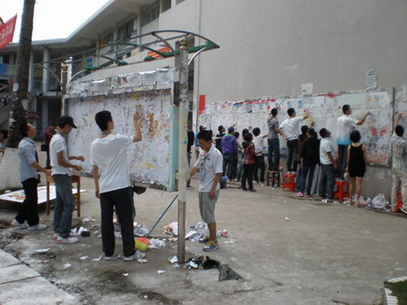 3月4日,我校学生在第一田径场、第二食堂、社团一条街、起点草坪、思源学堂等地点,开展对附近道路和宣传栏的集中清理、整洁活动,以实际行动弘扬雷锋精神。在整个三月,学校还将陆续开展关爱农民工子女、和特殊学校结对子、文明行动进社区等多项志愿服务活动。