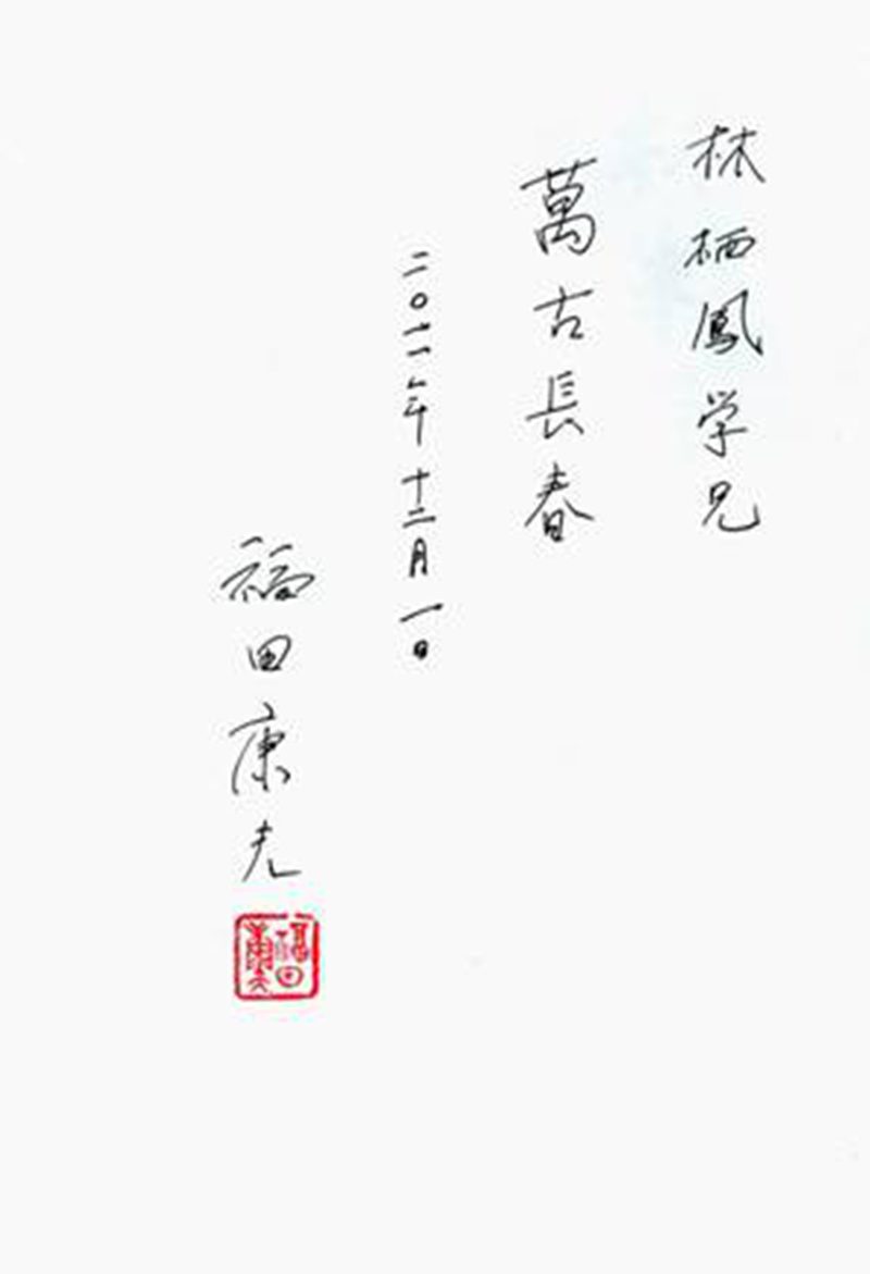 近年来林栖凤教授为了使父亲的篆刻艺术传承于世,经过认真构思,整理编著了《林半觉篆刻》一书,于2011年1月由国家文物出版社出版。该书较全面地介绍了林半觉先生的篆刻艺术作品,分析了他的篆刻艺术道路、特点和风格,同时对有关印主人物及创作背景、时代环境等进行了必要的介绍。令人瞩目的是,名章中的许多印主是我国近代历史上著名的学者、政要,如郭沫若、李济深、李宗仁、徐悲鸿、章士钊、梁漱溟等,其中第一届全国政协委员有近十人之多。又如在抗日战争时期,以抗战为题材创作的大量篆刻作品中“焦土抗战”、“还我河山”、“壮怀激烈”、“国难兴邦”等,气势恢弘,极具感召力,在抗战文化史上发挥了重要影响。1979年10月桂林市与日本熊本市结为友好城市,半觉先生十分欣喜,创作了 “中日友好”、“万古长青”、“扶桑海宇风光美”、“华夏春秋岁月长”等十几枚印章,圆融茂秀、拙朴高古,汇通秦汉古玺神韵,充分体现对中日友好的祝福与期待。此外还收录了半觉先生珍藏并拓下边款的部分名人印章,如齐白石、邓尔雅、赵少昂、何遂、周哲文,王贤、马衡、冯康侯、容肇祖以及明代著名文学家曹学佺等众多名家的印作。该书内容丰富翔实,图文并茂,集篆刻艺术、历史文物研究与收藏价值于一体。发行一年来,其精湛的艺术水平和珍贵的历史文化价值受到国内外学术界的广泛重视,已被我国和美国、日本三十多家著名图书馆收藏,中国驻日本大使馆还将其作为礼物赠予日本前首相福田康夫和几所大学的图书馆。福田康夫亲笔题写了“萬古長春”以表谢忱。该书在对外文化交流方面发挥了积极的作用。