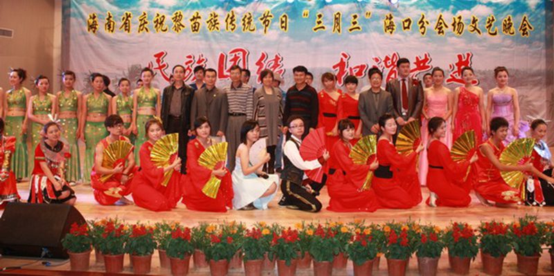 3月25日晚,由海口市民族宗教事务局主办、我校承办的2012年海南省黎苗族传统节日“三月三”海口分会场文艺晚会在艺术学院音乐厅隆重举行。海口市政府副秘书长吴琼,海南省民宗委宗教局局长彭桂荣,海口市民宗局局长蔡信强、副局长钟考锋,海南大学统战部部长蔡鹤龄等与我校师生观看了晚会。
