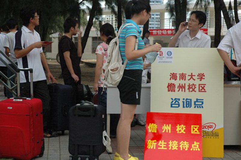 9月5日一大早,海南大学主校道上各种欢迎新的横幅已经挂满。校团委及各学院学生会在第一田径场门口干道设立了大本营,接待前来报到的新生和家长,笔者从现场看到,新生接待处的工作按部就班的进行,前来报到和咨询的新生和家长络绎不绝。另外获悉,今年学校贫困生绿色通道将继续开放,以确保家庭经济困难的学生能及时到校报到,办理缓缴学费手续,确保新生顺利入学。值得一提的是,在迎新大本营里也包括了儋州校区的新生接待点,以便能妥善安排到海甸校区报到的儋州校区新生。