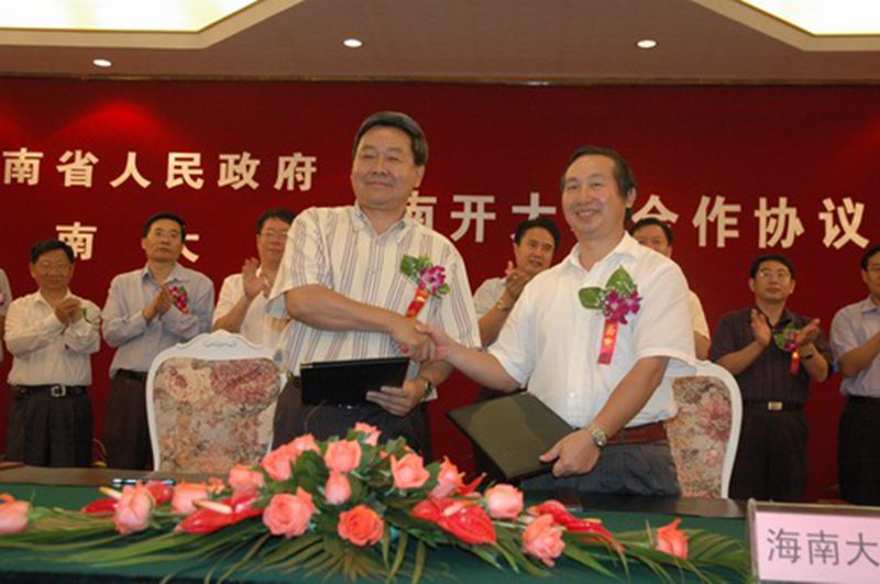 为进一步深化与南开大学的联系与合作,借助南开大学的综合优势推动我校发展,9月12日下午,我校与南开大学在海口签署合作协议书。南开大学校长饶子和院士和我校校长李建保教授代表双方在协议书上签字。