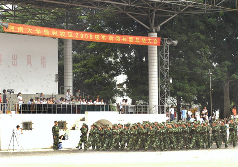 本网讯(记者 王维)9月18日下午,儋州校区2008级新生军训阅兵暨总结大会在田径场隆重举行。校区管委会主任陈琼花,副主任单明华,75574部队副政委杨长江以及学工处、校团委和各学院相关负责人在主席台就座,保卫处副处长梁仲友主持了大会。