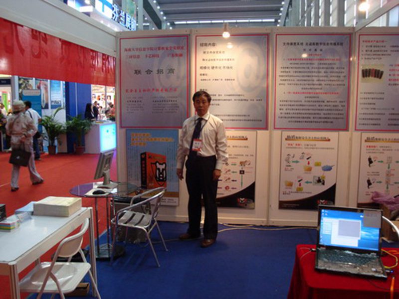 10月12日至17日在深圳举办的第十届中国国际高新技术成果交易会上出现了海南大学的专利产品,这是由信息科学技术学院信息安全实验室完全自主知识产权的两个专利产品——文件保密系统和无盗版数字信息传播系统。