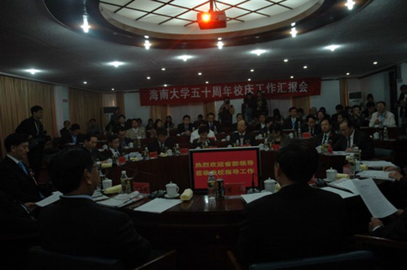 12月15日上午9:00,前来参加海南大学建校五十周年庆典大会的省部领导在海甸校区邵逸夫学术交流中心听取了我校汇报工作。