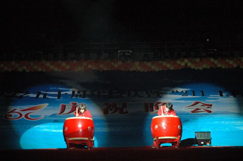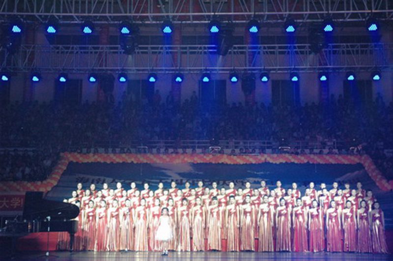 在一曲“鼓舞迎新”的精彩鼓乐表演中,庆祝晚会拉开了帷幕。第一篇章“山海同天”的第一首合唱 “美丽海大我的家园”,艺术学院女声合唱团的同学们用优美的歌声展现了海大人的热情和宽广的心胸,而接下来的“万泉河水轻又轻”则歌颂了海南美好的自然风光和早年革命老区军民团结、英勇无畏的革命精神。海南琼海嘉积中学的艺术团也前来助兴,表演了一支舞蹈“中国少年说”,赢得掌声如雷。在第一篇章中,独唱、民乐重奏和情景演唱异彩纷呈,现场气氛空前热烈。