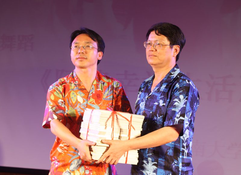 开幕式上还举行了赠书仪式。紫鹃代表台湾诗人、谭五昌代表北京师范大学中国当代新诗研究中心向我校赠送了图书,陈封椿副书记接受了赠书。