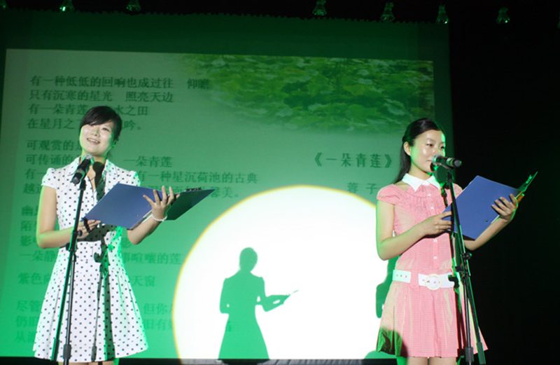 据了解,诗歌朗诵会上,除了诗人朗诵自己的诗作外,我校人文传播学院诗歌朗诵队的同学们也参与朗诵了部分名家诗篇。人文学子们深情的演绎以及校艺术团的同学们奉上的精彩的文艺表演,给观众留下了深刻的回忆。