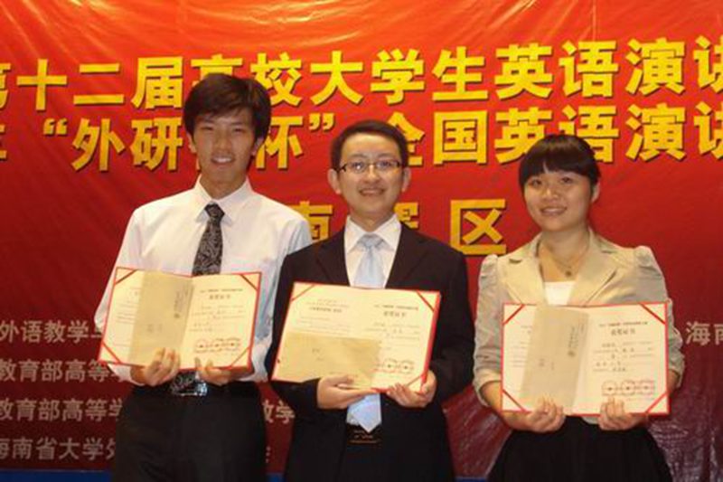 10月29日,第12届全省高校大学生英语演讲比赛暨2011年“外研社杯” (原“CCTV杯”)全国大学生英语演讲大赛选拔赛(海南赛区复赛)在海南师范大学田家炳书院二楼报告厅举行,来自全省各高校的35名选手参加了比赛。在本次比赛中,我校选手表现优异,荣获了专业和非专业组全部一等奖,其中,非专业组一等奖2名,二等奖2名;专业组一等奖1名,三等奖1名。获得一等奖的2011级旅游管理应用英语方向的李兆灿同学、2009级旅游管理应用英语方向的程佳更同学、2010级商务英语方向的徐懿春同学将代表我省高校,赴京参加2011年“外研社杯”全国大学生英语演讲大赛半决赛。