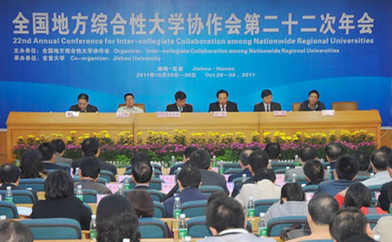 10月29—30日,由全国地方综合性大学协作会主办、吉首大学承办的全国地方综合性大学协作会第22次年会在湖南吉首召开,来自全国各地的24所地方综合性大学的60余位代表出席了年会,会议围绕“贯彻纲要精神,推动地方大学深化改革与科学发展”这一主题,进行了理论探讨与工作交流。会议发表了《2011年全国地方综合性大学吉首宣言》。我校胡新文副校长、校办杨红副主任参加了本次年会。