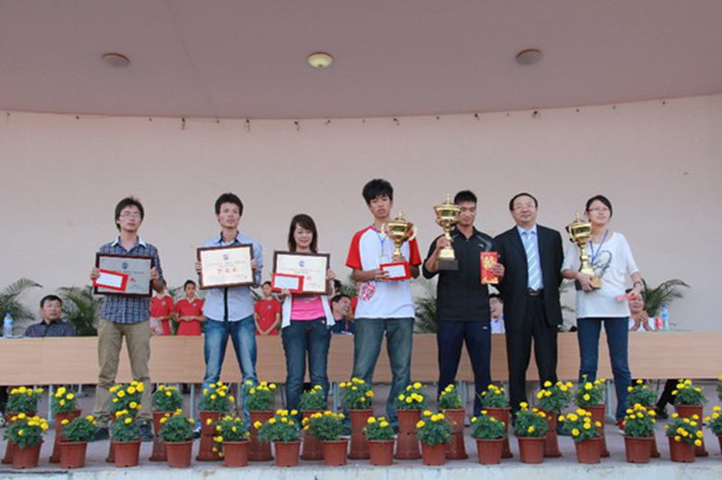 傅国华副校长分别为学生组前六名及破纪录的法学院运动员朱景军同学颁奖。