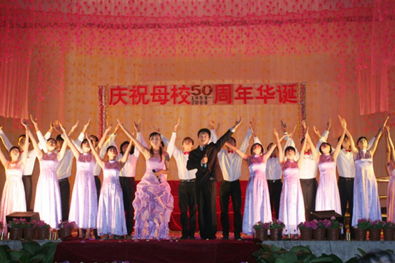 本网讯(记者郭甜甜)12月15日晚七点,校区影剧院成了欢乐的海洋,建校五十周年庆典暨第五届“清风杯”配乐吟诵晚会在影剧院隆重举行。校党委书记黄国泰,副校长谭基虎,校区管委会主任陈琼花,南京农大校长郑小波等校友代表出席并观看了晚会。