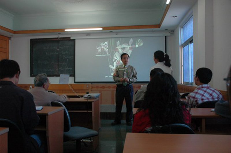 受我校儋州校区园艺园林学院的邀请,新加坡著名兰花专家Tim Wing Yam博士于12月17抵达海南,并与儋州校区管委会陈琼花主任进行了亲切、友好的交流。在对我校“热带园艺植物资源与遗传改良教育部重点实验室”考察后,于12月18号在儋州校区园艺园林学院报告厅做了题为“新加坡的兰花育种研究”和“新加坡兰科植物的保育与重引入”两个英文学术报告。报告由海南大学儋州校区园艺园林学院“园林植物与观赏园艺”专业负责人宋希强博士主持。