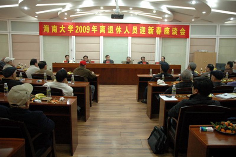 1月13日下午,海南大学2009年离退休人员迎新春座谈会在办公楼一楼报告厅举行。校党委书记黄国泰、校长李建保、校党委常务副书记刘康德、副校长谭基虎、副校长严庆、副校长周兆德出席会议,学校党办、校办、组织部、人事处、工会、离退休处主要负责同志以及原两校老领导,离退休处党总支委员、支部书记和离退休人员代表90多人参加了会议。会议由刘康德常务副书记主持。