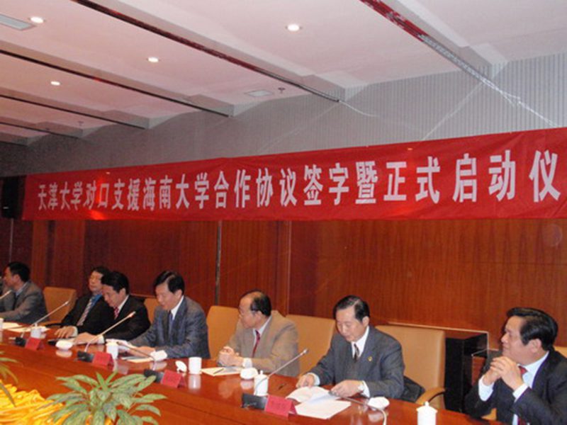 陈希副部长在讲话中首先代表教育部对签约双方表示热烈祝贺。他指出,高校对口支援工作是高等教育战线贯彻落实中央实施西部大开发战略的重要举措,是高等教育领域贯彻落实科学发展观,努力实现高等教育协调发展的具体体现,也是高等教育促进教育公平的重要内容。对口支援工作对于促进西部地区经济社会发展,促进民族团结和社会稳定,巩固国防和国家安全,都具有重要的战略意义和政治意义。他说,教育部对此项工作高度重视,特别是通过质量工程更有力地推动了此项工作的进展;西部地区政府和教育行政部门全力支持,努力营造对口支援工作的有利环境;支援高校讲政治、讲奉献,受援高校讲责任、求发展,对口支援工作取得了巨大成效。对受援高校来说,办学水平、学科建设、师资队伍建设、国际交往能力等都得到了明显提高,而支援高校也在承担这一光荣的政治任务中经受了锻炼,促进了发展,作出了贡献。陈希副部长在讲话中希望天津大学充分发挥自身优势,按照中央和教育部的精神,严格履行合作协议,本着“重点支援、注重实效、精诚合作、共同发展”的原则,以人才培养为中心,以学科建设、师资队伍建设、学校管理制度与运行机制建设等为重点,争取用5年时间,使海南大学的教学、科研和管理水平有较大提高,为该校的长远发展奠定坚实基础。