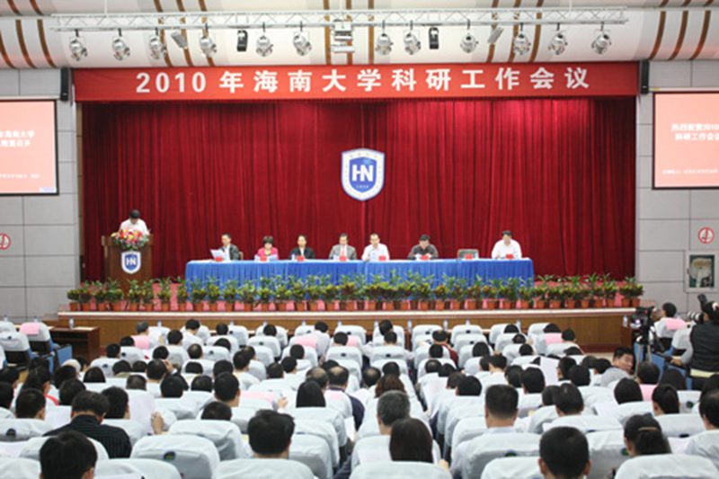 李建保校长汇报了我校近年来的科研工作情况。他说,2010年海南大学科研工作会议的主要任务是回顾和总结合并组建以来的我校科研工作,表彰科研工作先进单位、优秀团队和先进个人,研究今后几年我校科研工作总体安排,部署重点任务,为“十二五”我校科研事业又好又快发展打下坚实基础。