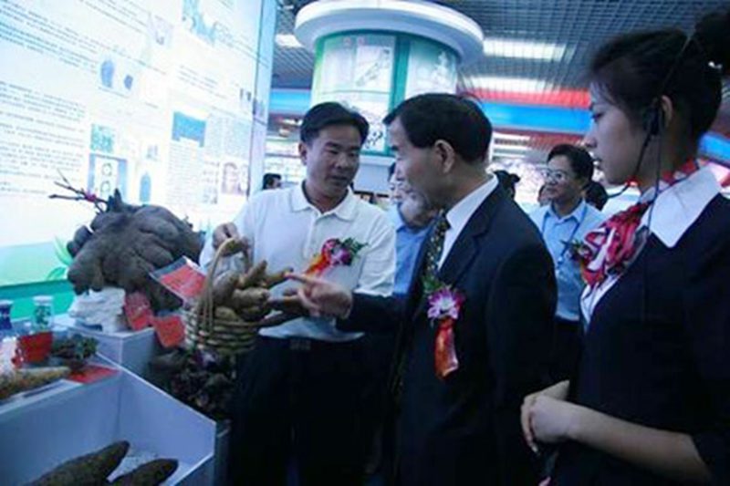 在海南大学展区,省农业农村厅肖杰厅长向中纪委派驻农业农村部纪检组组长朱宝成和海南省副省长陈成介绍了海南大学科研项目成果,朱宝成对海南大学培育出的超大参薯180号(65市斤/株)产生了浓厚的兴趣,鼓励研究团队继续努力培育高产优质的薯蓣新品种。