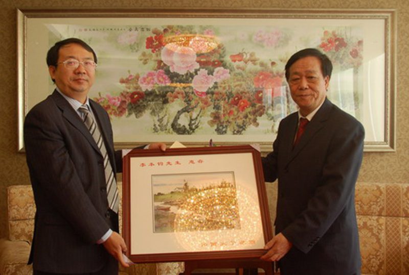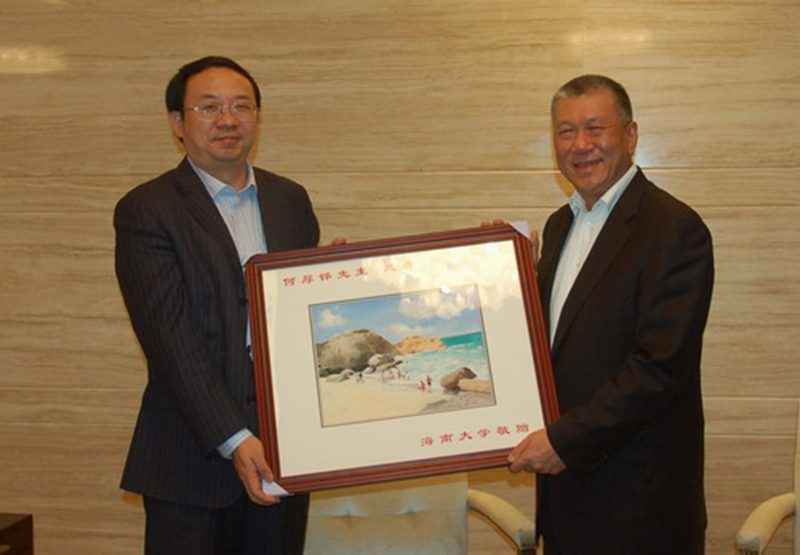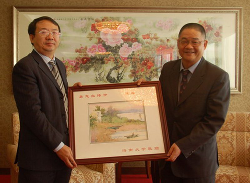 傅国华副校长(左)与全国政协副主席何厚铧先生(右)合影