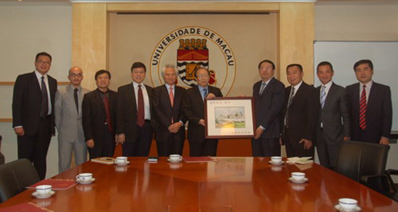 傅国华副校长(右四)与澳门大学校长赵伟先生(左六)等人合影