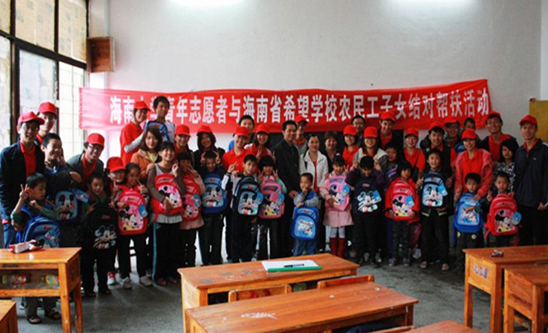 为响应毛泽东等老一辈革命家提出的“向雷锋同志学习”以及党和国家、团中央和教育部关爱农民工子女教育的号召,弘扬志愿者服务精神,积极投身社会主义建设和社会服务。3月5日,我校团委带领海南大学青年志愿者协会20名志愿者走进海南省希望学校,为该校里的农民工子女送上“爱心书包”,进行“结对帮扶”活动。