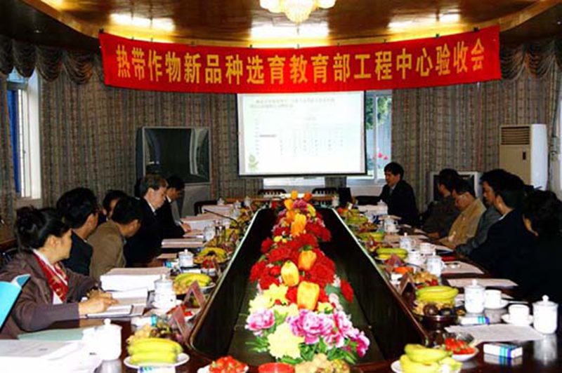 近日, 教育部组织以武汉大学朱英国院士为组长的验收专家组对依托我校建设的热带作物新品种选育教育部工程研究中心(以下简称“工程中心”)进行了验收,教育部科技司高新处处长董维国主持验收会议。省教育厅高教处朱双平副处长,中国热带农业科学院刘国道副院长,我校胡新文副校长出席验收会议。学校科研处负责人及工程中心部分研发人员参加会议。